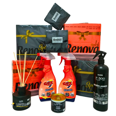 Uma seleção exclusiva da Suhimpor que combina elegância, fragrância e eficiência na limpeza. Este pack reúne produtos das marcas Renova, Proandre e Gex, ideais para criar ambientes limpos, perfumados e sofisticados.